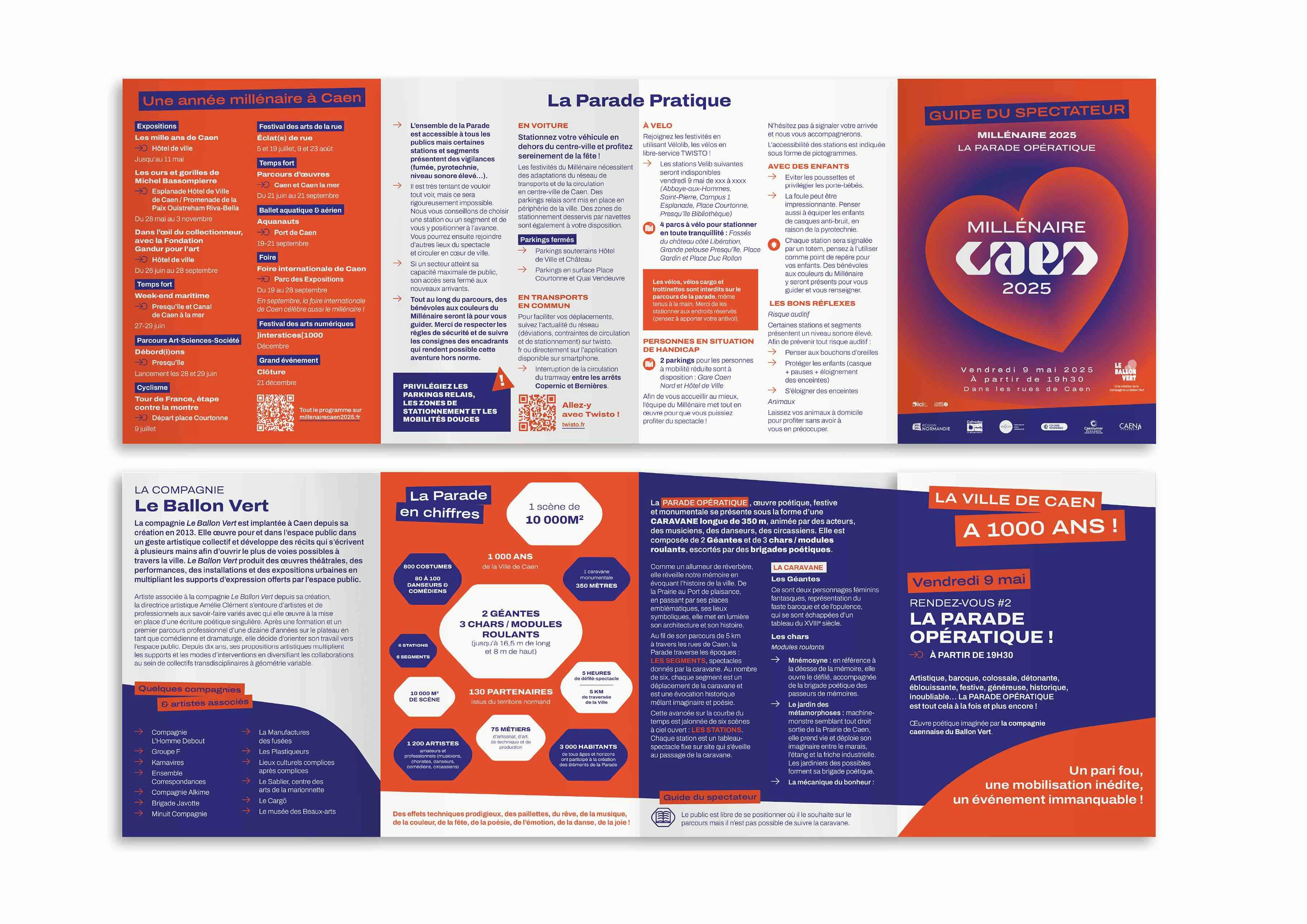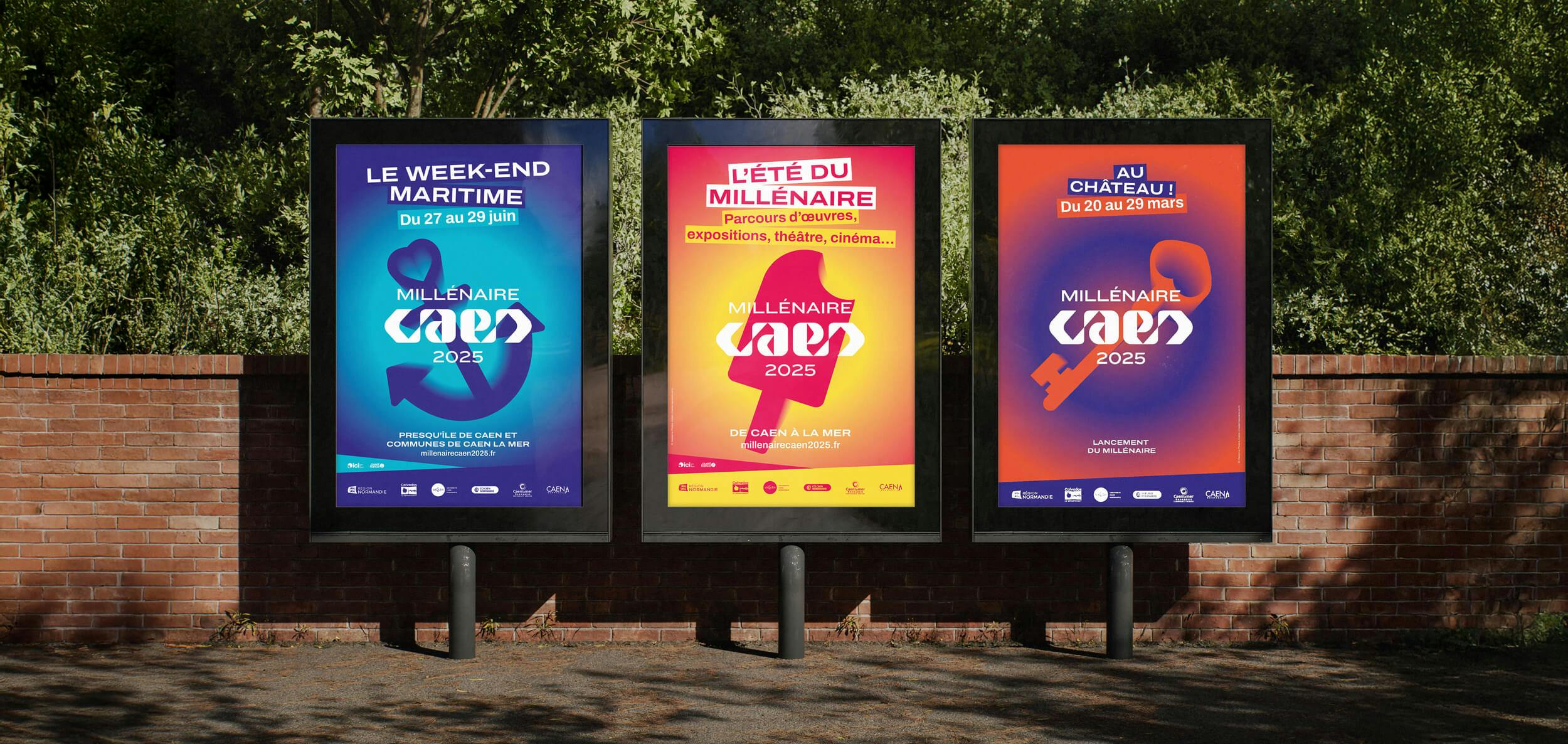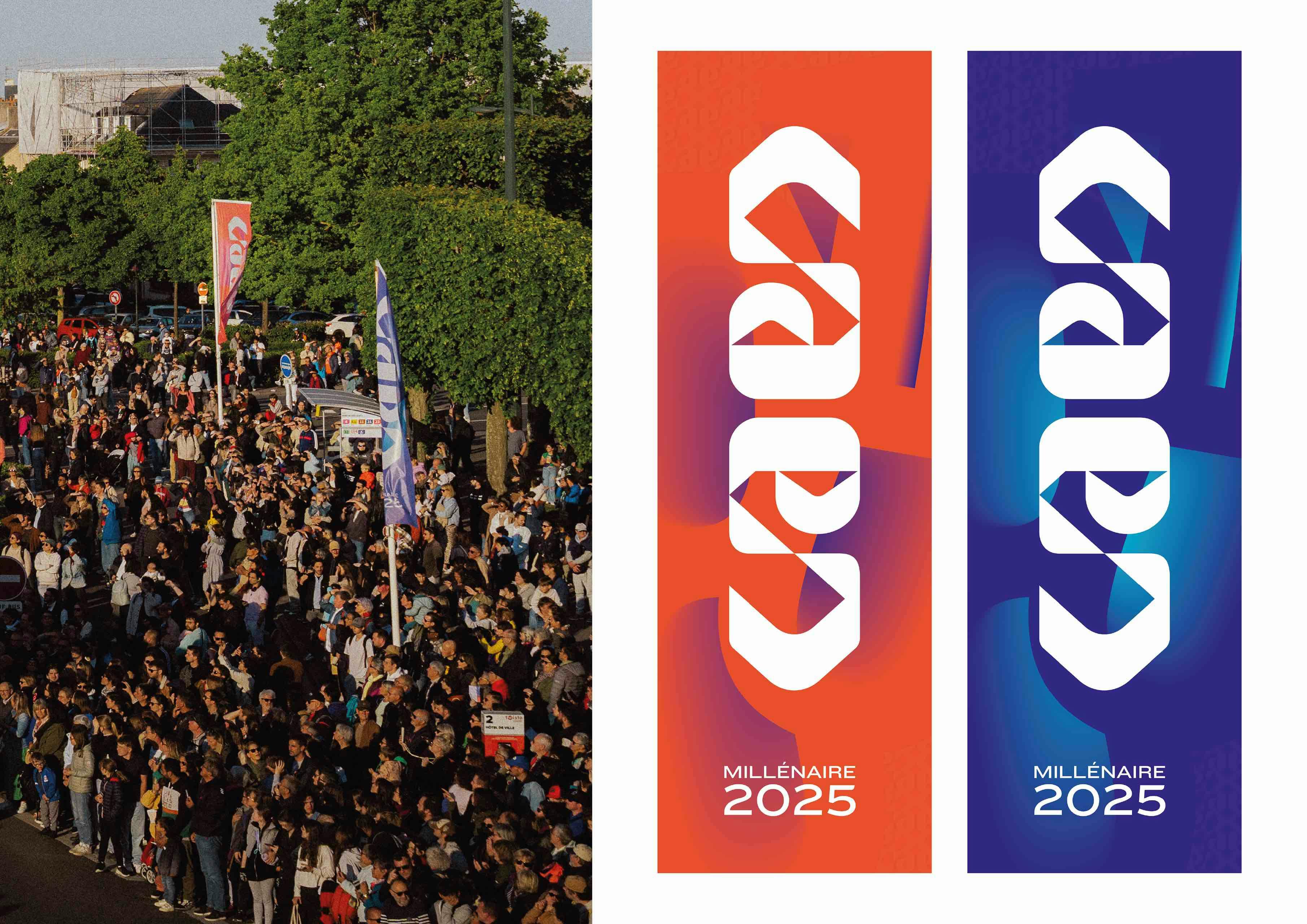 Dès 2024, le GIP du Millénaire nous confie une mission centrale : développer la déclinaison événementielle de sa charte graphique. En d'autres termes : faire vivre visuellement le Millénaire dans la rue, dans les mains, sur les écrans, au quotidien. Codifier une direction artistique capable d’unifier des dizaines de rendez-vous hétérogènes, sans jamais perdre leur singularité. Inaugurations, concerts, spectacles, conférences, parades, temps forts et moments suspendus : chaque événement avait sa personnalité, mais tous devaient parler d’une même voix graphique.