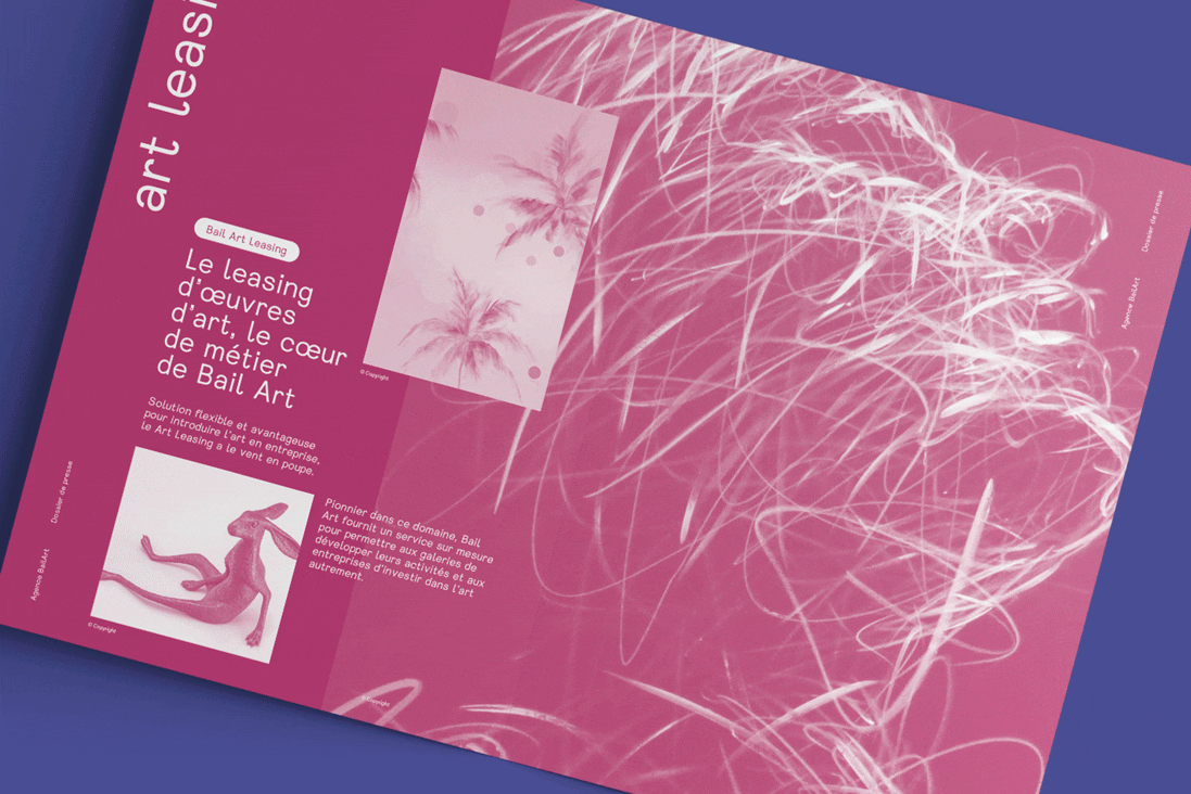 BailArt,aninnovativeproject,wasentirelyshapedbyouragency,encompassingacomplete360-degreegraphicdesign.FromtheconceptionofthegraphicchartertothecolourpalettesforBailArtLeasing,BailArtProjectsandBailArtLending,everyaspecthasbeenmeticulouslycreatedtoreflecttheartisticessenceoftheartworld.Thisuniqueprojectisgearedtowardstheartmarket,anditstimelesslookallowsittopenetratetheworldfromartgalleriestomuseuminstitutions.